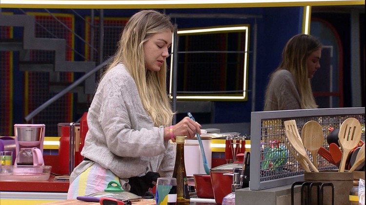 Metade da casa está dormindo no BBB 22, e Bárbara aproveita o momento para ir à cozinha fazer brigadeiro.