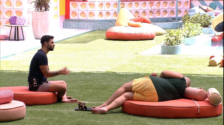 "O jeito que ela chegou na segunda-feira. É bom ser amigo dela porque eu queria saber 'será que estou na visão errada? A gente está bem distante. A gente se fala bem pouco. Mas as pessoas tem falado e eu tenho visto que ela é bem carinho, bem legal", diz Rodrigo. "ela é muito cuidadosa com as pessoas", aponta Tiago Abravanel. "Ela é", concorda Rodrigo. "Assim como todas as pessoas aqui na casa. Eu acho que todo mundo tem personalizade forte", completa Tiago Abravanel.