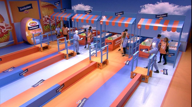 "Hoje a prova do Líder é do Levíssimo Seara, que deixa qualquer receita uma delícia. Divididos em duplas, vocês deverão montar um sanduíche de acordo com o gabarito no telão. O primeiro jogador deverá pegar o ingrediente na padaria, subir a escada, percorrer a trave, descer a escada do outro lado e encaixar a peça a mesa de montagem. E voltar até a padaria pela trave para que seu parceiro possa levar um novo ingrediente. Se a peça não encaixar, o jogo deverá trazê-la de volta até a área de padaria, sempre fazendo o percurso pela trave. Aí então será a vez do seu parceiro tentar encaixar a peça correta. Importante: cada jogador só pode percorrer a trave com uma peça de cada vez. O revezamento dos jogadores não pode ser feito na área de montagem. Sempre que um jogador cair da trave ou derrubar seu ingrediente, ele deve voltar a recomeçar o percurso subindo a escada por onde começou. O jogador que colocar o último ingrediente no sanduíche, aperta o botão. As duas duplas mais rápidas avançam para a final".