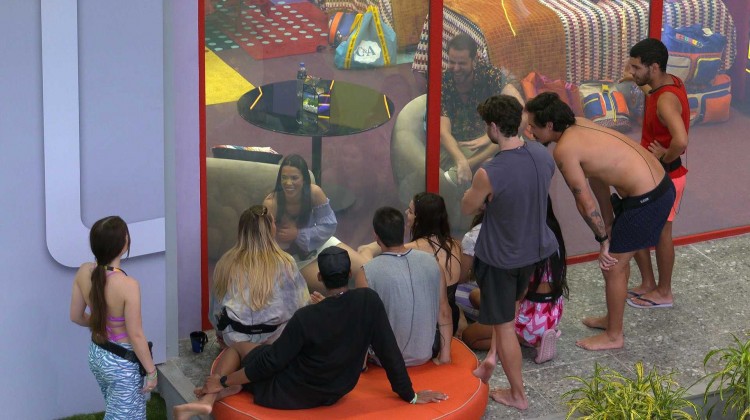 Laís quer saber se já tem uma pessoa muito querida fora da casa e Larissa da Casa de Vidro confirma. Em seguida ela manda outro recado para Arthur Aguiar, dessa vez sobre uma reclamação da esposa do ator, Maíra Cardi: a comilança do brother: "Comendo pão!". Todos riem.