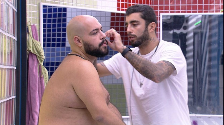 É noite de festa no BBB 22 e os brothers começam a se arrumar. Tiago Abravanel raspa a cabeça e, depois, Pedro Scooby o ajuda a aparar a barba para uniformizá-la. "Já deu uma abafada aqui no buraco, não tem mais buraco", diz o surfista.