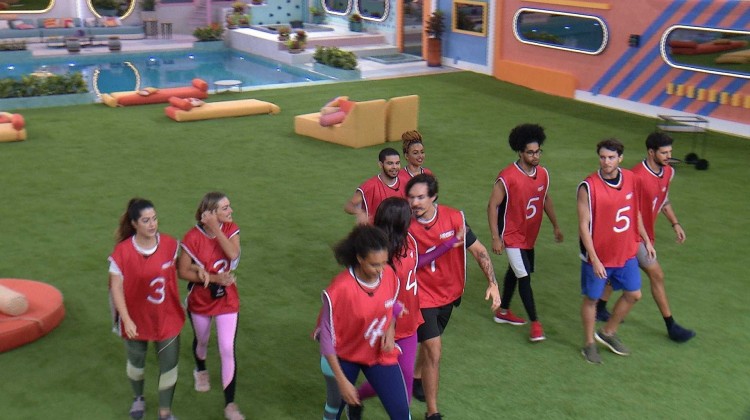 Tadeu Schmidt pede para os brothers do grupo Pipoca se dividirem em duplas para a primeira Prova do BBB22. Como o apresentador explicou na dinâmica da semana, a Prova de hoje será de resistência e uma dupla ganhará Imunidade.
