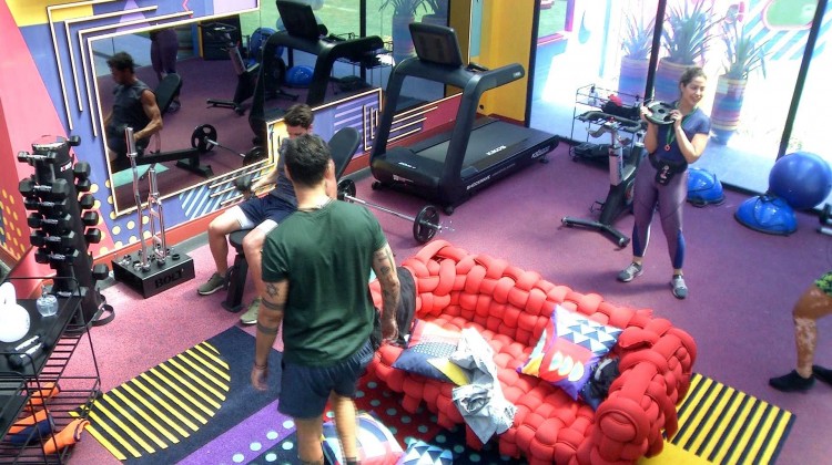 Rodrigo aproveita o momento de treino na academia para falar sobre votação: “Lucas, você tem opção de voto?”.