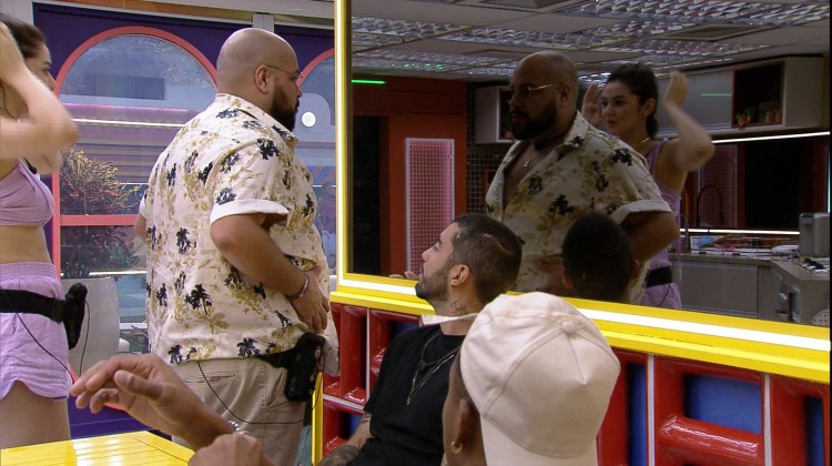 Na cozinha do BBB22, Tiago Abravanel olha para espelho e diz: "Gente, eu estou gato". Ele arranca risos dos brothers, e Douglas brinca: "Você é lindo. Brincadeira, não é, não".