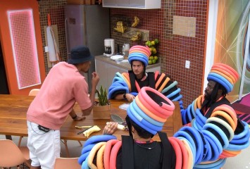Na cozinha da Xepa, Tiago Abravanel prepara um pão com ovo e Linn da Quebrada observa. A sister pe...