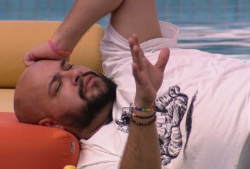 Na área externa da casa, Tiago Abravanel e Eliezer conversam sobre o dia do Paredão e as jogadas ...