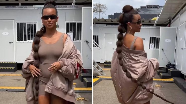 Domitila Barros rouba a cena no The Town com trança que arrasta no chão